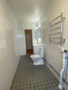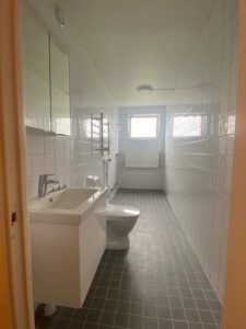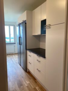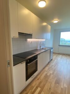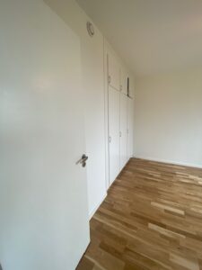 En av lägenheterna på Fjärdholmsgränd har renoverats och färdigställts som visningslägenhet, och nu kan du se resultatet här. Lägenheten visar den standard som alla hyresgäster erbjuds i den pågående upprustningen: nya treglasfönster, moderna materialval och en genomgående uppfräschad interiör.